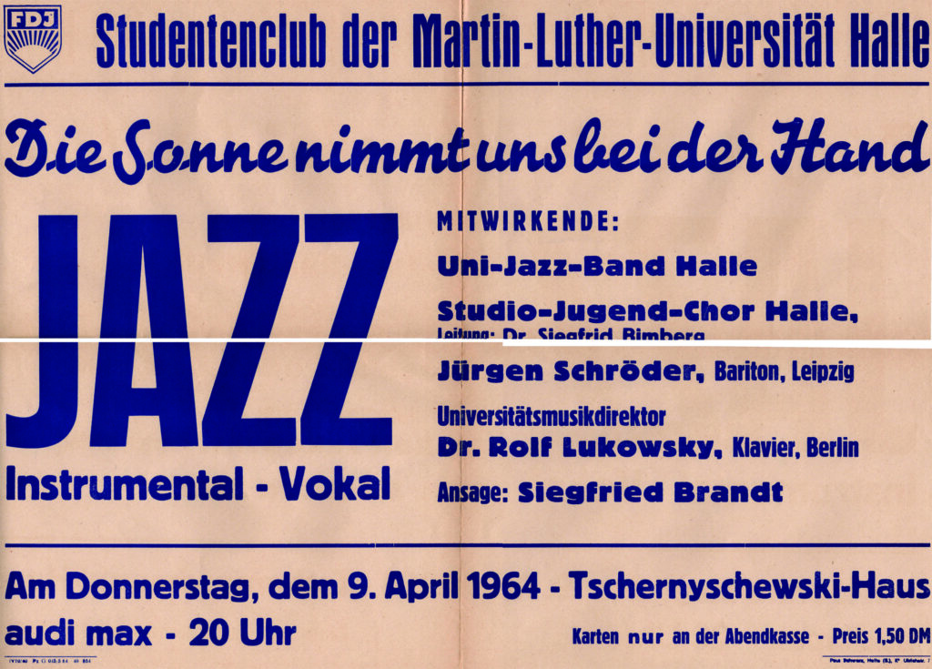 Kürzlich erlebten die halleschen Jazzfreunde zum zweiten Male Mr. Acker Bilk und seine Paramount Jazzband aus England auf den Brettern des Steintors. Bilk-Anhänger waren sicher zunächst enttäuscht, weil Gitarrist Tony Pitt sein Banjo zu Hause gelassen hatte und weil als »Bilk-fremdes« Element ein Altsaxophon den inzwischen schon zum Klischee gewordenen Sound veränderte. Bruce Turner – ein international geschätzter Vertreter der etwas süßlichen Hodges-S[ch]mith-Carter-Tradition – war dieser Neuerwerb. Bis auf Trompeter Al Fareweather tournierten die Solisten schon im vergangenen Jahr mit Bilk durch die DDR: Ron McKay (Schlagzeug und Kaugummi, letzteren alternierend mit Gesang), Thomas Finlayson (Baß), Stan Greig (Piano) und John Mortimer (Posaune).